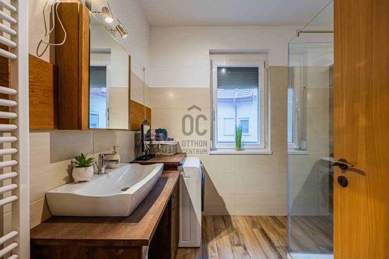-A lakásról VIDEÓBEJÁRÁS KÉSZÜLT, amit kérésére elküldök Önnek.A város legfiatalabb részén került eladósorba egy tüneményes lakás.NÍVÓS lakóparki környezetben, RENDEZETT utcák és FIATAL építésű házak szomszédságában található. A környék BIZTONSÁGOS, a társasház TISZTA és SZÉP állapotú, BARÁTSÁGOS lakóközösséggel.A lakás az ELSŐ EMELETEN található és rendkívül világos.Az elmúlt néhány évben TELJESEN FEL LETT ÚJÍTVA: minőségi burkolatokat, fürdőt, konyhát és beépített szekrényeket kapott.Az IMÁDNIVALÓ OTTHON a föld színeiben és anyagaiban pompázik, a TERMÉSZETES, harmonikus színválasztással MEGNYUGTATÓ környezetet hoztak létre, ötvözve a MODERN és LETISZTULT stílust a BARÁTSÁGOS, otthonos hangulattal.A kimondottan JÓ ELOSZTÁSÚ 56m2-en optimális ELRENDEZÉS valósult meg:KÉNYELMES előszoba, ABLAKOS fürdőszoba, KÜLÖN illemhely, TÁGAS hálószoba, VILÁGOS nappali-konyha és 6m2-es ERKÉLYalkotják a helyiséglistát.Az épület korszerű, SZIGETELT, műanyagtokos, thermoüveges nyílászárókkal. Egyedi méréssel megvalósuló házközponti kazán biztosítja a hőszabályozást, a fenntartási költség RENDKÍVÜL ALACSONY!Téli időszakban a TELJES rezsiköltség sem haladja meg a 35e Ft-ot!A társasház ZÁRT UDVARÁN FEDETT PARKOLÓHELY tartozik a lakáshoz, amely a vételárban benne van!A házba ELEKTROMOS KAPUN át autóval be lehet állni, a ház körül díjmentes a parkolás. IDEÁLIS VÁLASZTÁS, ha zöld környezetbe vágyik, de fontos Budapest könnyű elérése, ha kellemes hangulatú Otthonra vágyik olyan területen, ahol a csend uralja a hétköznapokat, de aktív pihenésre is számtalan lehetősége nyílik!Az ingatlan TEHERMENTES és MEGÁLLAPODÁS SZERINT KÖLTÖZHETŐ.KÖZELBEN: Lakóparki buszjárat megállói, télen-nyáron nyitvatartó Termálstrand, élelmiszerbolt, fagyizó, játszótér, bicikliút Nagymarosig, teniszpálya, Egészségház, bölcsi.Vasútállomás 18p sétatávolságra van, ahonnan 30 perc alatt Budapesten lehetünk.M2 autópálya lehajtója 5p, innen a belváros 20p.Ha fontos a NYUGODT KÖRNYEZET, az alacsony fenntarthatóság, vagy ha TÁGAS, VILÁGOS lakást keres, ez az OTTHON JÓ VÁLASZTÁS.Hívjon bizalommal a hét bármely napján!