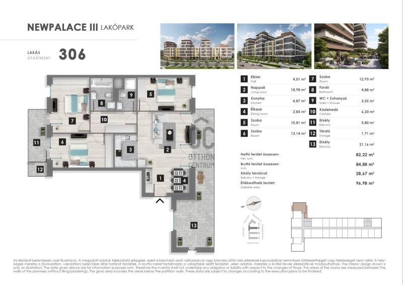 Modern, világos, energiatakarékos lakás eladó a Duna Plaza közvetlen közelében!XIII. kerület – New Palace Lakópark III. ütem3. emelet | 82,51 m² | 28,67m² erkély | 4 szoba | 2026 év végén költözhető | 5% ÁFA visszaigényelhető a vételár egy részébőlModern, világos, energiatakarékos lakás eladó a Duna Plaza közvetlen közelében, dél-keleti fekvéssel, belső kertre néző erkéllyel, Prémium nyílászárókkal, mennyezeti hűtés-fűtéssel, alacsony rezsivel, Nyugodt környezetben, mégis minden karnyújtásnyira van: bevásárlás, sport, parkok, Váci úti irodafolyosóKözlekedés kiváló:M3-as metró, buszjáratok, Újpest vasútállomás, gyors kijutás az M3-as autópályára.Kötelező teremgarázshely vásárlás: 6,9 M Ft.Kötelező 6,22nm tároló vásárlás: 3,5 M Ft.Ideális otthonnak vagy befektetésnek a XIII. kerület legdinamikusabban fejlődő részén!