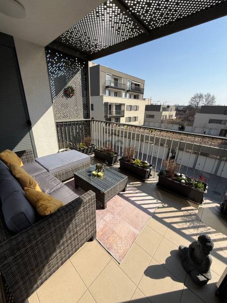FAGYÖNGY LAKÓPARK – ahová jó hazatérni! Csillaghegy zöldövezeti részén, modern, nem tömbszerű, privát élettérrel rendelkező lakást kínálunk eladásra: 3 szoba, erkély, beépített modern bútorok és gépesített konyha, ablakos fürdőszoba, külön kamra és az erkély szintjén saját tároló.RÖVID ÖSSZEFOGLALÓBudapest III. kerületében, Csillaghegy zöldövezeti részén, a 2020-ban épült, nem tömbszerű, prémium minőségű Fagyöngy Lakóparkban eladásra kínálunk a 2. emeleten egy nettó 65 m²-es, 3 szobás, fürdő, külön WC-s, kamrás, 13 m²-es erkélyes (tároló is van) lakást. A lakáshoz tartozik az igényes lakberendező munkáját dicsérő, teljes beépített bútorzat, valamint a modern, gépesített konyha is.FAGYÖNGY LAKÓPARKCsillaghegy szívében, családok számára kiemelten kedvező környezetben épült meg a III. kerület egyik legszebb lakóparkja! A fejlesztő célja volt, hogy szakítva a szokásos megoldásokkal, egy magas minőségű, energia hatékony lakókörnyezetet teremtsen az itt otthonra találó családok számára.- Természetes anyagok használata,- Aktív, igényes zöld területek kialakítása,- Gyermekek számára valódi élményt nyújtó játszótér,- Minőségi közösségi terek életre hívásaA környék tömegközlekedése és infrastruktúrája az egyik legkedvezőbb a környéken!10 épületben, összesen 160 igényes lakás került kialakításra, a hozzájuk tartozó garázsokkal, beállókkal és tároló helyiségekkel.A Fagyöngy Lakóparkban műszakilag a jelenlegi piacon az egyik legfejlettebb felszereltségű, modern mai otthonokat hoztak létre a lakók számára, ahol a gyönyörű, új otthon szerves része a kert és az a parkosított zöld terek által nyújtott aktív szórakozási lehetőségek.A Fagyöngy Lakópark lakóinak komfortérzetét tovább emeli, hogy az otthonuk közvetlen közelében, azaz a zárt lakópark területén került kialakításra egy kültéri edzőpark - felnőtt játszótér - és mivel a környéken nincsen a közelben játszótér, ezért a lakóparki gyerekek egy saját 400m2-es játszóteret kaptak.LAKÁS JELLEMZŐI:- SMART mennyezeti hűtő/fűtő rendszer- 3 rétegű üvegezésű nyílászárók- Elektromos redőnyök- riasztórendszer előkészítés- vizes helységekben padlófűtés- enerigatakarékos hőszivattyús technológia- modern, beépített, gépesített konyha- beépített bútorok- látványkandallóA HÁZRendezett, nincs tartozása, közös költség: 45 900 Ft. körül alakul, ebben már benne van a fűtés, a közös terek takarítása, szemét szállítás stb.Modern- saját játszótér- saját szabadtéri edzőpark- minden ház közös biciklitárolóval rendelkezik- zöldterület gondozását kertészek végzikMIÉRT EZT VÁLASZD?A budapesti III. kerületben, Csillaghegyen található Fagyöngy Lakópark legfőbb előnyei a következők:•Zöldövezeti elhelyezkedés: A lakópark egy közel 14 000 négyzetméteres kertvárosi területen valósult meg.•Korszerű kialakítás: Modern anyaghasználat, egyedi design és panorámás lakások jellemzik az épületeket.•Kiváló infrastruktúra: A Csillaghegyi Árpád Forrásfürdő közvetlen közelében helyezkedik el, jó megközelíthetőség mellett.•Nem tömbszerű beépítés: A tervezésnél fontos szempont volt, hogy a 160 lakás ne egyetlen nagy tömbben, hanem szellősebben kapjon helyet.•Prémium minőség: A kivitelező minőségi megoldásokra fókuszált a tömegigények helyett.KIKNEK AJÁNLJUK?Tökéletes választás pároknak, családoknak és azoknak, akik modern, nyugodt környezetben lévő otthont keresnek, illetve befektetésnek is. Az ingatlan teljes berendezéssel is megvásárolható.GARÁZS / TÁROLÓ:Udvari beálló opcionálisan megvásárolható a lakáshoz: 9,5 millió Ft.ért. Igény szerint a társasháztól van lehetőség érdeklődni, ha zárt teremgarázsra van szükség, vagy tárolóra.KÖZLEKEDÉS / INFRASTRUKTÚRA:A környék közlekedése kiváló. Néhány perc sétára található a Csillaghegy HÉV-megálló, ahonnan a H5-ös HÉV-vel a Batthyány tér kb. 20 perc alatt elérhető. A közelben több autóbuszjárat is közlekedik (pl. 34, 134), amelyek gyors kapcsolatot biztosítanak Óbuda és a III. kerület más részei felé. Autóval a Szentendrei út könnyen megközelíthető, így a belváros és az M0-s körgyűrű irányába is gyors a közlekedés.A mindennapi élethez szükséges szolgáltatások szintén a közelben találhatók: Csillagvár Bevásárlóközpont, Aldi, Lidl, kisebb üzletek és gyógyszertárak néhány percen belül elérhetők. A környéken orvosi rendelő, óvoda és iskola is megtalálható, így családosok számára is ideális választás.A szabadidős lehetőségeket a közeli Római-part, a Duna-part, valamint a Római Strandfürdő biztosítja, amelyek rövid idő alatt elérhetők.NE KERESSE TOVÁBB - HÍVJON!--------------------------------------Díjmentes, bankfüggetlen hiteltanácsadással támogatjuk vevő ügyfeleinket a számukra legelőnyösebb finanszírozási döntések meghozatalában. Opcionálisan igénybe vehető kiegészítő szolgáltatásainkkal – mint ügyvédi közreműködés, energetikai tanúsítvány vagy villamos biztonsági felülvizsgálat – teljes körű szakmai támogatást nyújtunk az adásvétel folyamatának minden egyes lépésénél.-------------------------------------A hirdetésben szereplő információk tájékoztató jellegűek. A tévedés és az árváltoztatás jogát fenntartjuk. Az esetleges elírásokért és technikai hibákért felelősséget nem vállalunk.