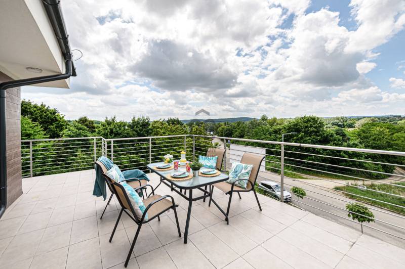 Hosszúrét egyik legszebb pontjánÖrökpanorámás, körben teraszos penthouse eladóBudapest XI. kerületében, Hosszúréten kínálok megvételre egy különleges adottságú, újszerű penthouse lakást. Természetvédelmi területtel szemben, csendes, zöld környezetben helyezkedik el, mégis kiváló közlekedéssel.Az épület:2022-ben épült, mindössze 4 lakásos társasház, zárt lépcsőházzal és gondozott kerttel. Nyugodt, kulturált lakóközösség.A lakás:90 m² lakótér + 64,4 m² terasz.Amerikai konyhás nappali, 3 külön nyíló hálószoba, kádas fürdő dupla mosdóval, valamint külön vendég WC.Dél–nyugati tájolásának köszönhetően egész nap világos, minden helyiség ablakos. Háromrétegű nyílászárók, elektromos redőnyök és szúnyoghálók biztosítják a kényelmet.Műszaki tartalom:Kondenzációs gázcirkó, 2 klíma, külön mérőórák, minőségi burkolatok és gépesített konyha.Átgondolt, hosszú távra tervezett kivitelezés.Elhelyezkedés:Természet közvetlen közelében, mégis gyors eléréssel:Kelenföld, M4 metró, valamint több buszjárat könnyen elérhető.Autóval az M1–M7 bevezető pár perc.A közelben minden megtalálható: üzletek, orvosi ellátás, bevásárlóközpontok (Eleven Center, Allee, Etele Plaza).Költségek és parkolás:Közös költség: 21 600 Ft/hóRezsi kedvező tartománybanTároló (5 m²): 6 M FtFelszíni beálló: 9 M Ft (kötelező)Utcai parkolás ingyenesKinek ideális?Annak, aki világos, tágas tereket keres, szereti a természet közelségét, de nem mondana le a városi kényelemről sem.Ez az ingatlan a \"Felező csomag\" megbízási portfólióhoz tartozik. Részletek az Otthon Centrum weboldalán.
