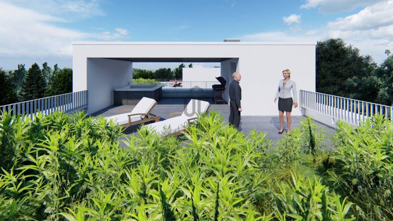 Budaörs egyik legkeresettebb, természetközeli részén, Kamaraerdő csendes, hegytető közeli utcájában valósul meg ez a mindössze négy lakásból álló, boutique jellegű prémium társasház, amely a modern építészet, a funkcionalitás és a valódi életminőség találkozása. A 967 m²-es telken épülő projekt tudatosan alacsony lakásszámmal készült, így biztosítva a lakók számára azt a fajta privát szférát és nyugalmat, amely ma már ritkaságnak számít a piacon.Az épület nem csupán lakásokat kínál, hanem egy komplex, magas színvonalú életformát. A lakók kényelmét két nagyméretű, összesen közel 200 m²-es mélygarázs szolgálja, amely több autó elhelyezésére is alkalmas, emellett a pinceszinten egy közel 34 m²-es edzőterem, valamint wellness részleg és infra szauna is kialakításra kerül. A közös terek között kiemelkednek a tetőszinten elhelyezett, jakuzzival felszerelt, 50 és 45 m²-es tetőteraszok, valamint a zöldtetők, amelyek tovább erősítik az épület exkluzív, természetközeli karakterét. A műszaki tartalom a mai kor elvárásainak megfelelően korszerű, energiahatékony megoldásokra épül, prémium minőségű nyílászárókkal és igényes kivitelezéssel.A projekt négy különálló lakása eltérő karakterrel, de egységes szemlélettel került megtervezésre, mindegyik esetében a jól élhető terek, a világos belső kialakítás és a kültéri kapcsolatok kapták a főszerepet.Az 1. lakás a földszinten helyezkedik el, 115,19 m² alapterülettel és egy 18,74 m²-es terasszal. Elrendezése klasszikus családi otthont idéz, ahol a 23,79 m²-es nappali-étkező, a különálló konyha, valamint a három hálószoba kényelmesen elkülönül egymástól, miközben két fürdőszoba és külön WC is biztosítja a mindennapi komfortot. A lakáshoz tartozó eszmei hányad 2588/10000.A 2. lakás szintén földszinti, azonban nagyobb, 118,56 m² alapterülettel rendelkezik, amelyhez egy kiemelkedően tágas, 32,78 m²-es terasz kapcsolódik, így ez az otthon különösen ideális azok számára, akik a belső és külső életterek egyensúlyát keresik. A 25 m²-es nappali-étkező, a 11,17 m²-es konyha és a három hálószoba mellett itt is két fürdőszoba szolgálja a kényelmet. Az eszmei hányad 2664/10000.A 3. lakás az emeleten található, 115,79 m² alapterülettel, amelyet több erkély tesz igazán különlegessé, összesen közel 23 m² kültéri kapcsolattal. A közel 30 m²-es nappali-étkező világos, tágas központi térként működik, amelyhez három hálószoba és két fürdőszoba kapcsolódik. Ez a lakás elsősorban azoknak ideális, akik a fényt, a kilátást és a nyitott térélményt helyezik előtérbe. Az eszmei hányad 2602/10000.A 4. lakás a projekt legkompaktabb, ugyanakkor rendkívül jól szervezett otthona, amely 95,47 m² alapterületen kínál teljes értékű életteret. A nappali-étkező, a külön konyha, három hálószoba és két fürdőszoba mellett egy 12,61 m²-es erkély egészíti ki a lakást. Ez a kialakítás ideális választás lehet mind saját célra, mind befektetésként, hiszen a fenntartható méret párosul a prémium környezettel. Az eszmei hányad 2145/10000.A projekt várható átadása 2026 vége, amely lehetőséget ad arra, hogy a leendő tulajdonosok még a korai szakaszban válasszanak, és egy valóban különleges, hosszú távon is értékálló ingatlan részesei legyenek.