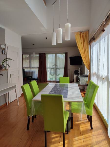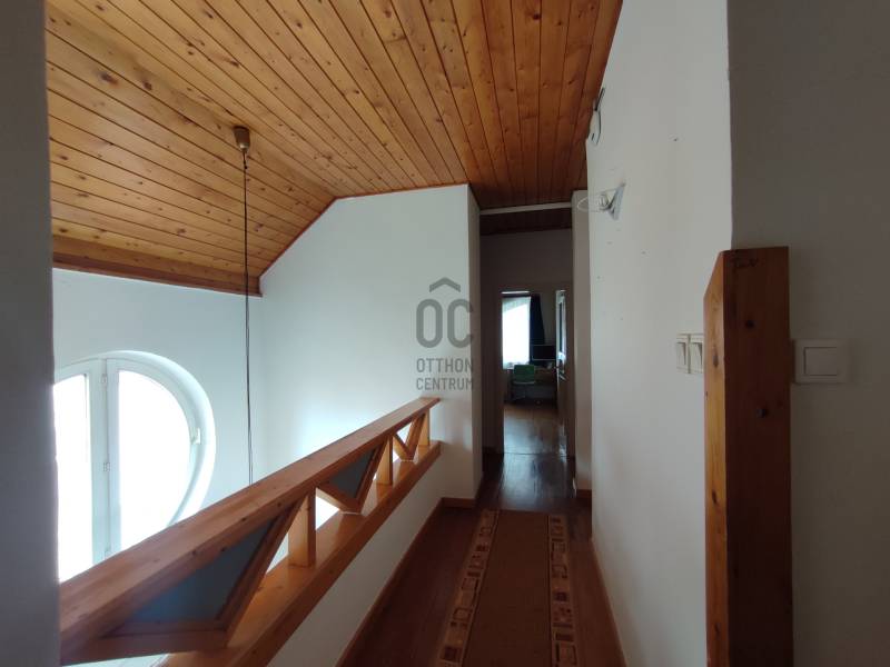 Csendes, zöld, családias környezetben lakóparki lakás eladó!Kőszegen, csendes, családias lakóparkban vált eladóvá ez a kertkapcsolatos, kertre néző, 180 nm-es, egyedi tervezésű, kétszintes sorházi lakás.Az ingatlan Kőszeg kedvelt lakóövezetében, csendes, nyugodt környezetben, a belvároshoz közel helyezkedik el egy 4 lakásból álló sorházban.A lakás földszintjén előszoba, konyha, étkező, nappali, egy hálószoba, egy kisebb fürdőszoba, kazánház, kamra és tárolóhelyiségek kaptak helyet. A nappaliból és az étkezőből jutunk a két teraszra, onnan pedig a kizárólagos használati joggal rendelkező, jól szeparált, 443 nm-es parkosított kertbe.Szép kivitelű, kényelmes lépcső vezet az emeletre, ahol 5 hálószoba, 2 fürdőszoba, egy gardróbszoba van, valamint a folyosón beépített szekrény szolgálja a tárolási lehetőséget. A galéria jellegű folyosóról beláthatjuk a díjnyertes tervezésnek köszönhető izgalmas, napfényes tereket.Az ingatlan hőszigetelt műanyag nyílászárókkal szerelt, a fűtésről és a melegvíz-ellátásról egy puffertartállyal kiegészített kondenzációs gázkazán gondoskodik.A ház előtt 2 gépkocsi számára biztosított a parkolás lehetősége.A lakás átlagos állapotú, igény szerint felújítandó, remek adottságokkal bíró ritkaság az ingatlanpiacon.Kiváló lehetőség nagycsaládosoknak, összeköltözőknek, de akár önálló családi ház alternatíváját keresőknek is. Számos lehetőséget rejt magában ez a különleges tervezésű ház, mely csak Önre vár, hogy új élettel töltse meg napfényes tereit!További információkért és megtekintési időpont foglalásáért kérem, hívjon bizalommal!Hitelre van szüksége? Az Otthon Centrum az ország egyik legnagyobb és legmegbízhatóbb hitelközvetítőjeként, teljes körű és díjmentes hitel ügyintézéssel, biztosításkötéssel áll rendelkezésére! Kérje személyre szabott ajánlatunkat Kollégáinktól!Válassza ki az Önnek legmegfelelőbbet!