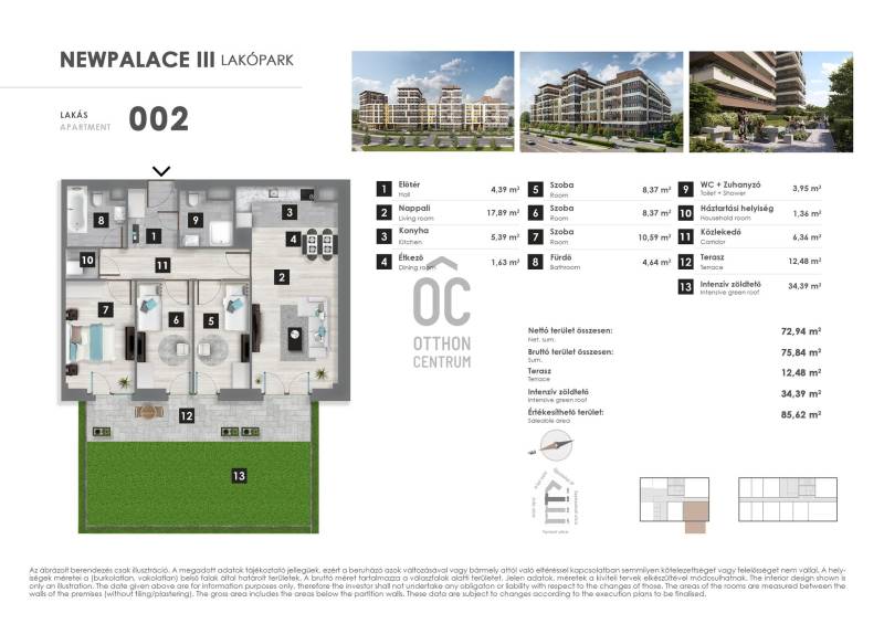 OTTHON START KOMPATIBILIS LAKÁSVÉGSZERZŐDÉS ALÁIRHATÓModern, világos, energiatakarékos lakás eladó a Duna Plaza közvetlen közelében!XIII. kerület – New Palace Lakópark III. ütemföldszint | nyugati fekvés | 73 m² nettó | 27m² erkély | 35m² saját kert | 4 szoba | 2026 év végén költözhető | 5% ÁFA visszaigényelhető a vételár nagyobb részébőlModern, világos, energiatakarékos lakás eladó a Duna Plaza közvetlen közelében, hibátlan fekvéssel, belső kertre néző erkéllyel, Prémium nyílászárókkal, mennyezeti hűtés-fűtéssel, alacsony rezsivel, Nyugodt környezetben, mégis minden karnyújtásnyira van: bevásárlás, sport, parkok, Váci úti irodafolyosóKözlekedés kiváló:M3-as metró, buszjáratok, Újpest vasútállomás, gyors kijutás az M3-as autópályára.Kötelező teremgarázshely vásárlás: 8 M Ft.