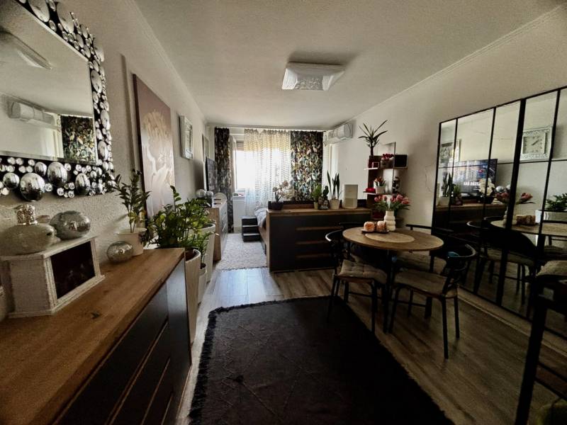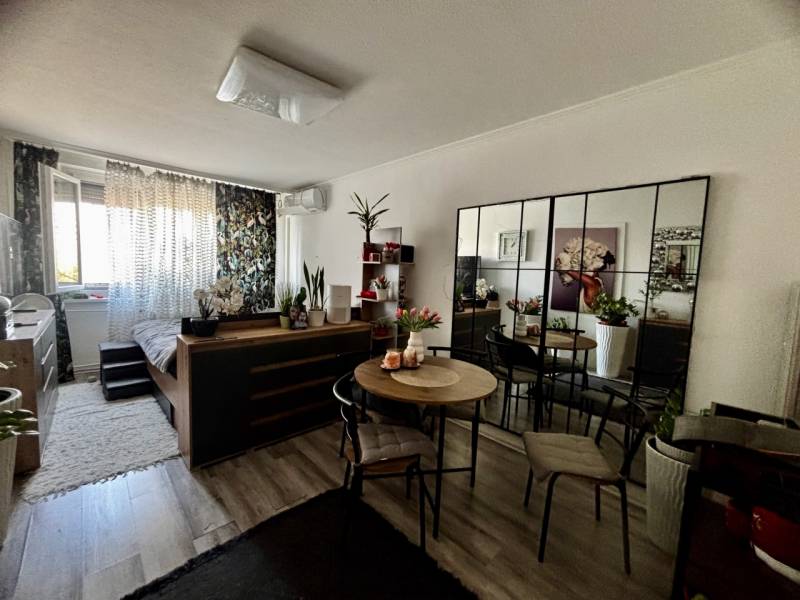 Csak a mi irodánk kínálatában elérhető ajánlat!XI. kerületben Etele úton, közvetlen az Etele Pláza közelében, egy 1980-ban épült, délnyugati fekvésű, V. emeleten lévő 50m2-es, 2 szoba+loggiával rendelkező, felújított állapotú lakást kínálunk megvételre.Helyiségei: előszoba(6,4m2), gardrób(2,35m2), fürdőszoba(2,4m2), WC.(0,7m2), konyha(5m2), kamra(0,55m2), nappali(16,87m2), hálószoba(12,63m2), loggia(3,96m2)A konyha 2024-ben, a fürdőszoba 2025-ben került felújításra.-mindkét szobában hűtő-fűtő klíma felszerelt.-nappaliban a nyílászárók műanyagra lettek cserélve.Hideg-meleg vízórás lakás, közös költsége 22.150 Ft./hó., fűtését távhő szolgáltatás biztosítja.A lépcsőház tiszta, biztonsági kamerával felszerelt.A lakáshoz közös tároló helyiség tartozik.A környékről: pár percre található üzletek Etele pláza, az Allee, a Savoya park (Auchan, Aldi, DM, OBI, Rossman, gyógyszertár, Kórház stb)….Bikás park séta távolságra nyújt kikapcsolódási, sportolási lehetőséget.Óvoda, Bölcsőde, Iskola, Cukrászda, Élelmiszerbolt, Gyógyszertár, a lakástól néhány perc alatt sétatávolságban elérhetőek.Parkolás közterületen lehetséges, fizetős övezetben.Amennyiben Önnek a vásárláshoz szüksége lenne hitelre, OTTHON START HITEL, CSOK PLUSZ, babaváró kölcsönre, lakástakarékra, stb., kezdeményezheti a kapcsolatfelvételt bankfüggetlen hitelügyintézőinkkel, teljesen DÍJMENTESEN.Közlekedés szempontjából szintén nagyon jó helyen van a lakás:A Kelenföldi pályaudvar, M4-es metró, számtalan buszjárat(114, 213, 7), az 1, 47, 17, 19, 49-es villamos közelsége gyors bejutást biztosít a városba.Autóval pár perc alatt elérhető az M7, M1, M0 autópályák, Budaörs bevásárló centrumok.Amennyiben felkeltette az érdeklődését, kérem keressen bizalommal a hét minden napján!