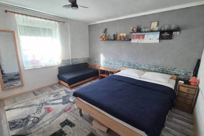Baja kedvelt részén, Katonavárosban eladó egy 60 nm-es, téglaépítésű családi ház, 720 nm-es, rendezett telken.Az ingatlan elrendezése praktikus:1 tágas szoba,2 félszoba,konyha,étkező,fürdőszoba,garázs.A ház közepes állapotú, folyamatosan karbantartott, hőszigetelt. A burkolatok között greslap és laminált padló található. A fűtést gázkonvektorok biztosítják, a melegvízről bojler gondoskodik.Az ingatlan egyik nagy előnye a korszerű, új műanyag nyílászárók, valamint az új típusú fa nyílászárók, amelyek jó hőszigetelést és esztétikus megjelenést biztosítanak.A 720 nm-es telek rendezett, kellemes pihenőkerttel és hangulatos kerti tóval, amely igazi nyugalmat áraszt. A nyugati fekvésnek köszönhetően a kert és a lakótér délutánonként napfényben fürdik.Ideális választás lehet:kisebb családnak,idősebb párnak,első lakást keresőknek,vagy akár befektetésnek is.Csendes, családi házas övezet, mégis könnyen megközelíthető elhelyezkedéssel.Irányár: 26.000.000 Ft