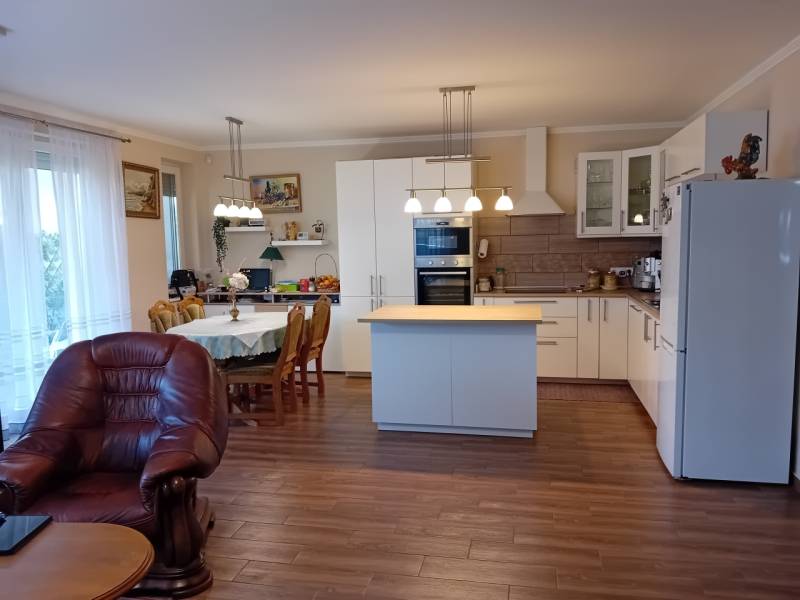 Telkiben ÚJSZERŰ sorház jellegű, nappali + 4 szobás, DUPLA KOMFORTOS társasházi lakás, saját használatú KERTTEL, FEDETTT GÉPKOCSI BEÁLLÓVAL eladó!A 2020-as építésű társasházban 4 db lakás található.Az itt ajánlott 2 szintes, remek elosztású otthon teljesen önálló elhelyezkedésű, szeparált külső-belső bejárattal és külön kertrésszel rendelkezik.Helyiségei: amerikai konyhás nappali + 4 külön nyíló szoba, 2 tágas fürdőszoba.A felső szinten fedett erkély, a földszinten hangulatos terasz egészíti ki a belső teret.Privát, kerítéssel és külön bejárattal rendelkező csodás kert és saját fedett gépkocsi beálló tartozik az ingatlanhoz, továbbá egy szép kerti lak is található az udvaron.A gondozott kert, termő gyümölcsfák és bokrok, a terasz feletti szőlőlugas varázsolják igazán csodássá az ingatlant.Az otthon fűtését korszerű kondenzációs gázkazán, hűtését klímaberendezés biztosítja.Telki csodás természeti környezete, jó levegője gyógyító erővel bír, nemhiába vált a fővárosból kiköltözők kedvelt célpontjává .Az infrastrukturális és oktatási fejlesztések lekövették az egyre gyarapodó lakosságszám növekedést, így minden megtalálható az ingatlan közvetlen közelében, ami a mindennapokhoz szükséges.Az ingatlan per-teher és igénymentes, rövid határidővel költözhető. Finanszírozási kérdésekben is állunk szíves rendelkezésre.Kérem, hogy hívjon bátran további információkért.ID:389553