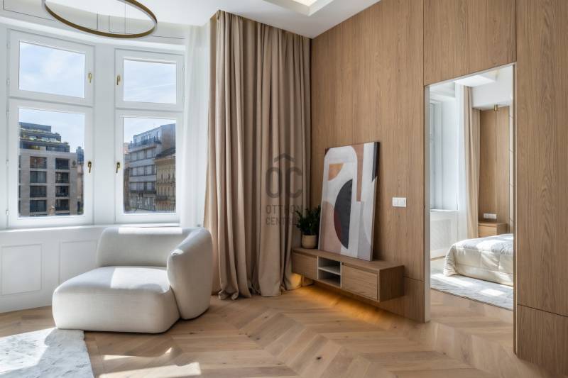 Ahol a múlt értékei és a jelen kényelme találkozik - Üdv Itthon!RÖVID ÖSSZEFOGLALÓEladó egy 93 m²-es, 3 szobás, különleges lakás Budapest belvárosában, a Bécsi utca 1. szám alatt. Az 1910-ben épült, tégla társasház második emeletén található ingatlan 3,8 méteres belmagassággal, kifinomult terekkel és két fürdőszobával rendelkezik.A városi panoráma, a klasszikus elegancia és a modern komfort harmóniája teszi igazán vonzóvá – mindezt egy liftes, rendezett épületben, a Belváros ikonikus pontján.LOKÁCIÓA Bécsi utca neve önmagában is fogalom: Budapest egyik legizgalmasabb sétálóövezetének kezdete.Innen pár lépés csupán a Vörösmarty tér, a Duna-part, a Fashion Street és a város legjobb éttermei, kávézói. A környék tökéletesen ötvözi a pezsgő életet és a mindennapi praktikumot: kiváló közlekedés, exkluzív üzletek, kulturális programok és a belváros eleganciája mind kéznyújtásnyira van.AZ ÉPÜLETA ház homlokzatán az “Ybl tervező” felirat díszeleg – a historikus miliő a magyar építészet nagy mestereinek örökségét idézi.A 20. század eleji téglaépület méltóságteljes atmoszférája a régi Budapest hangulatát őrzi, miközben a közös terek rendezettek, az épület állapota jó, és a lift kényelme mindennapossá teszi a nagyvonalú belvárosi életérzést.OTTHON, AHOVÁ JÓ HAZATÉRNIA klasszikus részletek és a modern világítás játéka különleges atmoszférát teremt: a falakat keretező vonalak és a mennyezet alatt lebegő designlámpák harmonikus egységet alkotnak. A halszálkában rakott, Chevron Renoir tölgyfa parketta időtlen eleganciát sugároz, amelyhez a világos színű bútorok és a textúrált kárpitok tökéletesen illeszkednek. A hatalmas ablakokon át beszűrődő fény kiemeli a városi panorámát, és a klasszikus polgári terek kortárs élettérré változnak.A két különnyíló hálószoba a meleg tónusú faburkolatokkal és geometrikus falpanellezéssel intimitást és nyugalmat áraszt, míg a két teljes értékű fürdőszoba, és a külön vendégmosdó, Villeroy & Boch szaniterekkel a kényelem biztosítéka. A beépített konyha a design és a funkcionalitás egyensúlyát testesíti meg: rejtett tárolók, prémium Miele gépek és egy markáns konyhasziget találkozik a nappali kifinomult esztétikájával.A gázcirkó padlófűtés, a korszerű világítási rendszerek, a jó állapotú nyílászárók és a teljes műszaki kiépítettség mind hozzájárulnak ahhoz, hogy az ingatlan azonnal költözhető, kortárs belvárosi otthonként várja új tulajdonosát.FUN FACT – MIÉRT SZERETJÜK AZ 5. KERÜLET PANORÁMÁJÁT?A belvárosi panoráma különleges ajándék: az épületek történelmi vonalai, a pezsgő utcák ritmusa és a Duna közelsége egyetlen pillantásban összeér. Innen nézve a város egyszerre klasszikus és modern: a szomszédos homlokzatok gazdag ornamentikája párbeszédbe lép a nappali minimalista enteriőrjével.Ez a kilátás építészeti kontrasztot kínál – a múlt kézzel faragott részletei és a jelen letisztult vonalai egymást erősítik. A városi panoráma minden nap új perspektívát ad: egyszerre inspirál és megnyugtat, hiszen minden ablak egy-egy élő képként mutatja be Budapestet.MEGHÍVÓEz a lakás a történelmi múlt és a modern nagyvárosi kényelem találkozása. Ha szeretnéd átélni a belvárosi panoráma varázsát és a 3,8 méteres terek légies eleganciáját, hívj, és megmutatom Neked ezt a páratlan otthont!----------------------------------------------Díjmentes, bankfüggetlen hiteltanácsadással támogatjuk vevő ügyfeleinket a számukra legelőnyösebb finanszírozási döntések meghozatalában. Opcionálisan igénybe vehető kiegészítő szolgáltatásainkkal – mint ügyvédi közreműködés, energetikai tanúsítvány vagy villamos biztonsági felülvizsgálat – teljes körű szakmai támogatást nyújtunk az adásvétel folyamatának minden egyes lépésénél.----------------------------------------------A hirdetésben szereplő információk tájékoztató jellegűek. A tévedés és az árváltoztatás jogát fenntartjuk. Az esetleges elírásokért és technikai hibákért felelősséget nem vállalunk.