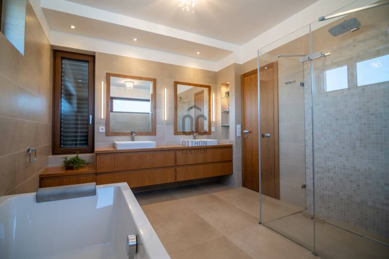 Prémium modern családi ház 2 nappalival, 7 szobával, szaunával – Madárhegy legszebb részén, örök panorámávalBudapest XI. kerületének egyik legkeresettebb, exkluzív lakóövezetében, Madárhegy csendes, rendezett utcájában kínálunk megvételre egy valóban különleges, modern minimál stílusú családi házat. Az ingatlan ritka értéke a teljes intimitás, a természet közelsége és az a nyugalom, amely hosszú távon is stabil értéket és élhető mindennapokat biztosít.Ez az otthon nemcsak méreteiben, hanem gondolkodásmódjában is prémium: két tágas nappalival, hét különálló szobával, szaunával és energiatudatos, alacsony fenntartású műszaki megoldásokkal készült – mindazzal, amire egy modern, családközpontú élethez szükség van.Főbb méretek, alapadatokTeljes lakóterület: 323 nmTerasz: 61 nmErkély: 37 nmKert: kb. 1400 nmTelek mérete: 1661 nmGarázs: 2 autó részére, zártFöldszint – a közös élmények tereA földszint szíve a nagyvonalúan megnyitott nappali–étkező–konyha egység, ahol a háromrétegű, nagyméretű üvegfelületek természetes fényt és közvetlen kapcsolatot biztosítanak a terasszal és a kerttel. Ezek a nyitott terek ideálisak a család számára: közös étkezésekhez, beszélgetésekhez, ünnepekhez vagy akár baráti összejövetelekhez.Földszint:Előtér: 9,15 nmNappali: 32 nmÉtkező: 17,6 nmKonyha: 13,7 nmWC: 3,3 nmDolgozószoba / vendégszoba: 14 nmSportszoba / spórolásra is alkalmas multifunkciós szoba: 18 nmGarázs: 37 nmA földszinti sportszoba igény szerint alakítható edzőtérnek, hobbihelyiségnek vagy akár energiatakarékos tároló- és gépészeti kiegészítő térnek, így a ház működése hosszú távon is gazdaságos marad.Emelet – privát terek és nyugalomAz emeleten kapott helyet a második nappali, amely tökéletes családi pihenőtér, gyerekeknek kialakított lounge vagy csendes esti kikapcsolódás helyszíne lehet. A szint elrendezése ideális nagycsalád számára is: minden hálószoba világos, jól bútorozható és funkcionálisan elkülönül.Közlekedő: 12,4 nmFürdőszoba: 7,7 nmSzobák: 13,5 nm | 13,6 nm | 13,5 nm | 21 nmSzülői háló: 17 nm – teraszkapcsolattal és panorámávalVendégszoba: 9,2 nmSzülői fürdő: 13,2 nmA szülői háló saját, prémium felszereltségű fürdővel és közvetlen teraszkapcsolattal rendelkezik, ahonnan zavartalan kilátás nyílik a zöld környezetre. A földszinten kialakított szauna a mindennapok részévé teszi a pihenést és a regenerálódást.A magas minőségben kialakított konyhát egyedileg gyártott, praktikus beépített bútorok, AEG háztartási gépek és indukciós főzőlap teszik teljessé, míg a bárszékek kellemes teret biztosítanak a kötetlen konyhai beszélgetésekhez. A mindennapi komfortot vízlágyító rendszer és padlófűtés biztosítja.Az enteriőr hangulatát gondosan megtervezett világítás, dizájner lámpák és igényesen kiválasztott burkolatok határozzák meg, amelyek minden részletükben az esztétikumot és a minőséget képviselik. A háztartási helyiség beépített szekrényekkel és praktikus pakolófelületekkel segíti a mosó- és szárítógép melletti házimunkát.Az ingatlan teljes bútorzattal kerül értékesítésre, mivel a berendezések jelentős része egyedileg gyártott, kifejezetten ehhez az otthonhoz tervezett darab.Környezet és elhelyezkedésMadárhegy egyik legnagyobb értéke az egységes utcakép, az alacsony beépítettség és a zöld környezet. A házat utcafronti növényfal védi, így a kert és a terasz teljes privát szférát biztosít.Rövid időn belül elérhetők:több óvoda és bölcsődekiváló állami és magániskolák, valamint nemzetközi intézmények Újbudánbevásárlási lehetőségek, sport- és kirándulóhelyekA környék presztízse folyamatosan növekszik, ami az ingatlant nemcsak szerethető otthonná, hanem biztos hosszú távú befektetéssé is teszi.Műszaki tartalom – energiatudatos prémiumDaikin 11 kW-os hőszivattyú – mennyezethűtés-fűtés és padlófűtésHelios hővisszanyerős szellőztető rendszerLoxone okosotthon rendszer – fűtés, hűtés, árnyékolás telefonról vezérelhetőSchneider ipari kategóriás elektromos elosztó9,5 kW-os napelemes rendszer 8 kW-os Huawei inverterrel.Szaldó elszámolás 2030-igÁtlagos villanyszámla: kb. 5.000 Ft/hóTeljeskörű medence-előkészítés a kertbenEz az ingatlan azoknak készült, akik nem kompromisszumot keresnek, hanem minőséget, tágas közös tereket, családi élményeket és hosszú távon fenntartható megoldásokat Budapest egyik legjobb részén.Vegye fel velem a kapcsolatot, és egyeztessünk egy személyes megtekintést – ez az otthon élőben mutatja meg igazán, miért lehet könnyű beleszeretni.