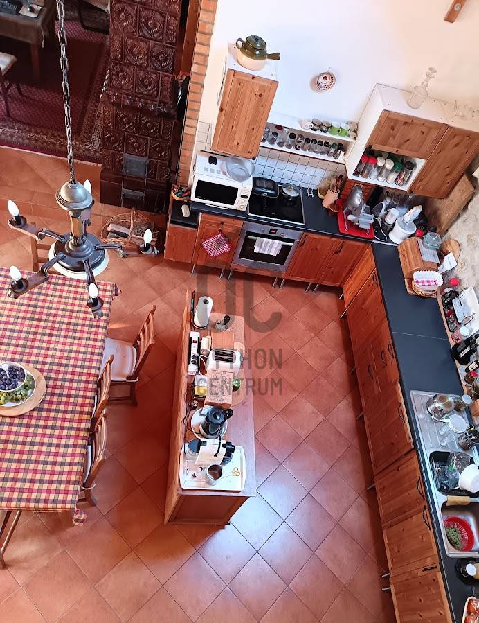 Kiemelt megbízás az Otthon Centrum Kínálatában!A ház 150 m2-es hasznos területű.Egy 35 m2-es önálló apartman van benne külön bejárattal továbbá még két hálószoba a galérián, két konyha, étkező, nappali szoba és három fürdőszoba valamint egy kamra.A ház 1820 ban épült, 2006- ban tejleskörűen fel lett újítva a műemlék védelem felügyelete mellett.Előírás szerinti szigetelést kapott a ház továbbá új fa nyílászárókat.Gáz cirkós fűtés van ami életvitelszerű használatnál havi 16000 Ft költséget jelent.Van a házban két darab újra rakott antik cserép kályha is ami kiváló alternatív lehetőséget jelenthet.A házba 3x25 Amper van bekötve.A főépülettel szemben helyezkedik el egy 50 m2-es melléképület ami jelenleg tároló és barkács műhely.Kettő garázs és egy fedett beálló van még az udvarban,Az összesen 3128 m2-es ősfás telek számtalan dologra teszi alkalmassá az ingatlant.Barnag félúton helyezkedik el Veszprém és a Balaton között.A műemlék védett házak napról napra újulnak meg, A településen intelligens igényes emberek élnek.Amennyiben érdekli az ingatlan kérem hívjon.Ez az ingatlan a \"Felező csomag\" megbízási portfólióhoz tartozik. Részletek az Otthon Centrum weboldalán.
