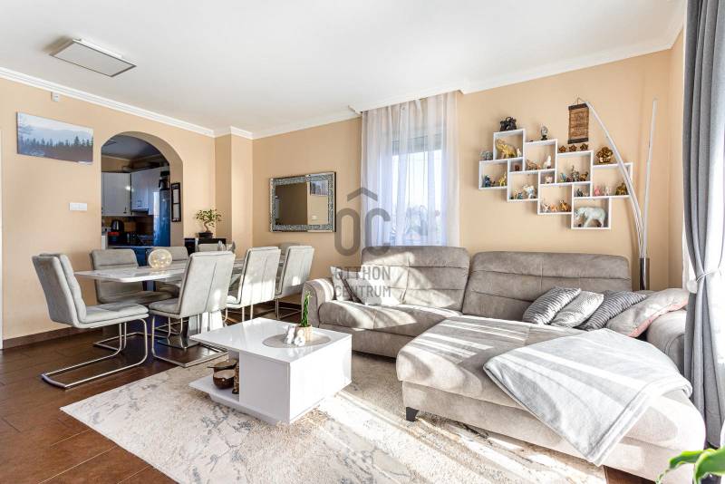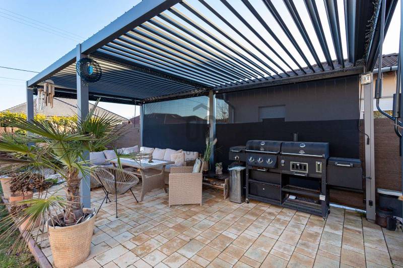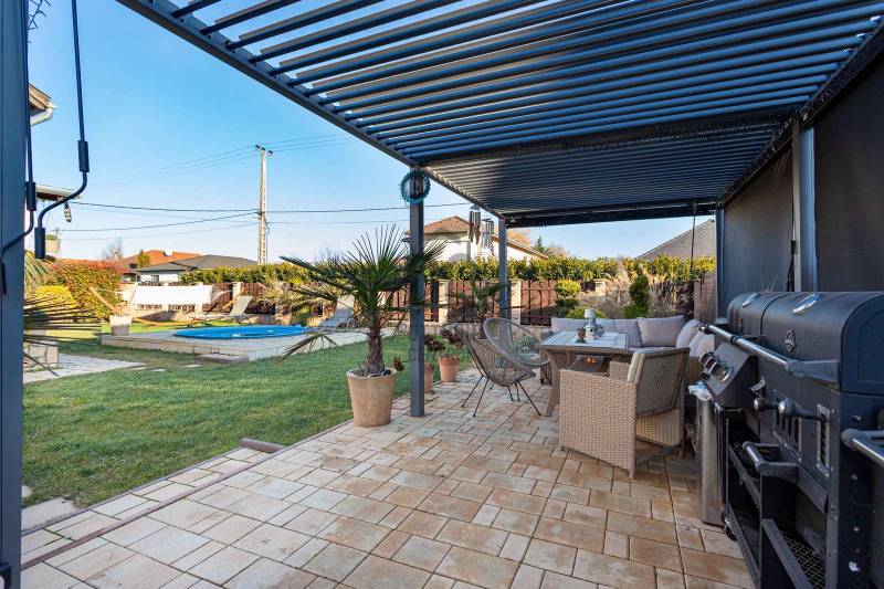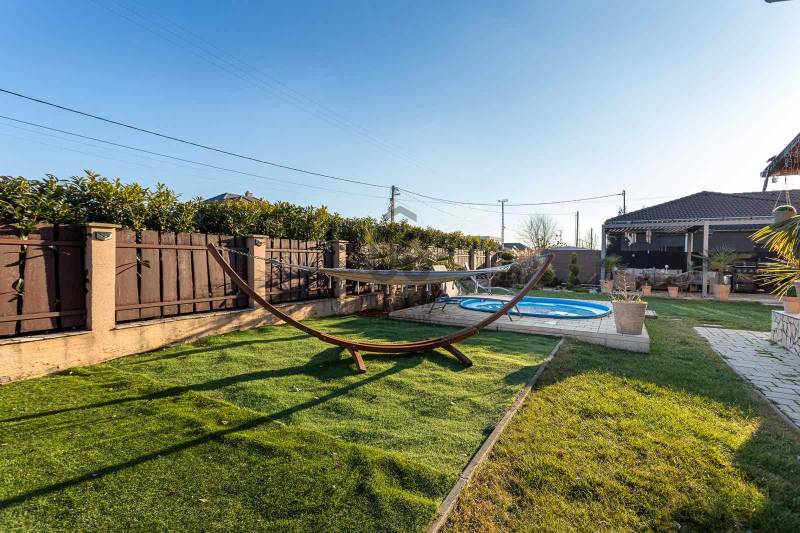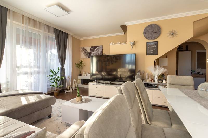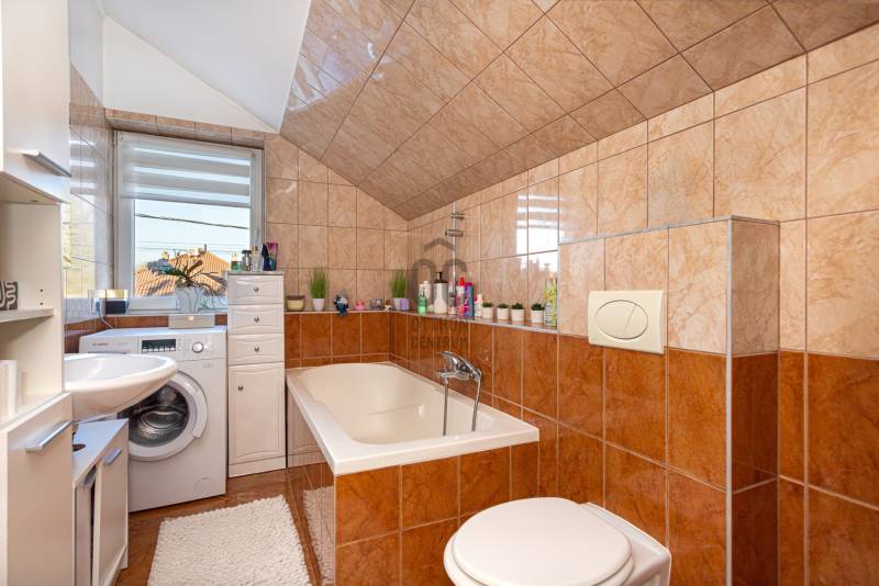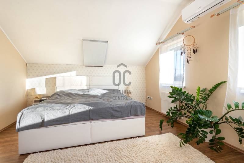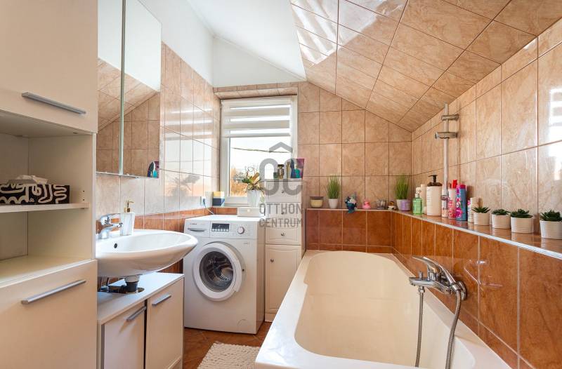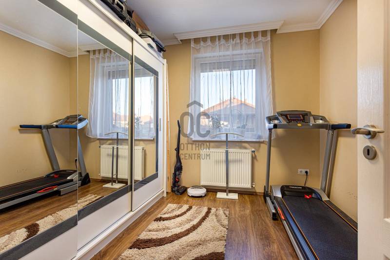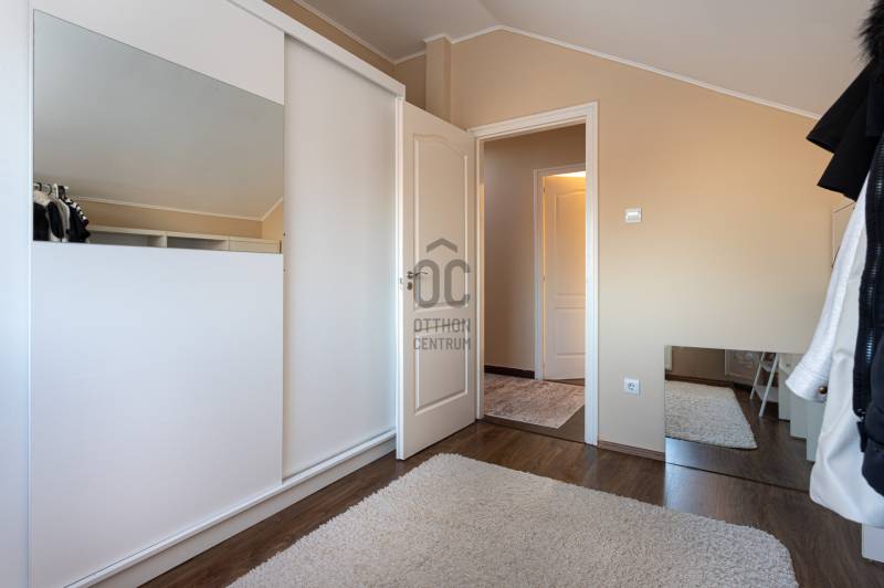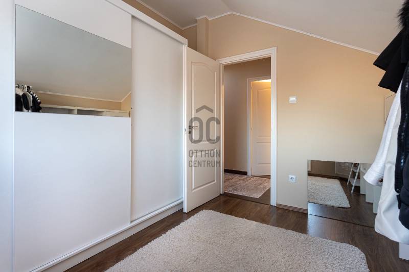Megvételre kínálunk Nagytarcsán, a Felsőrét lakópark csendes zsákutcájában egy 88 m2-es, 2 szintes szélső sorházi lakást.Csak a földszinten lévő előszoba és fürdő fala kapcsolódik a szomszéd ingatlanhoz!Az ingatlan vételára tartalmazza a bútorokat és a berendezéseket is beltéren és kültéren egyaránt!!!A ház 2012-ben épült téglából, 10 cm szigeteléssel, a telek méret kb 330 m2. A ház elrendezése:Földszint:- előszoba- nappali- szoba- fürdőszoba- konyhaEmelet:-közlekedő- 2 szoba- fürdőszobaFőbb jellemzők:- turbós kombi cirkó fűtés a földszinten radiátor + padlófűtéssel, az emeleten radiátorokkal- riasztórendszer- kamerarendszer- klíma- öntöző és csepegtető rendszer (applikációval vezérelhető)- 3 m átmérőjű süllyesztett medence- 4 fős jakuzzi thermo tetővel- 18 m2-es bioklimatikus pergola (lamellák mozgatásával szabályozható a fényviszony és a szellőzés, zárt állapotban pedig teljesen vízálló, védve a teraszt az esőtől, hótól és a széltől)- örökzöld kert: pálmák, babérmeggy, korallberkenye, alaktujákBuszmegálló, általános iskola, óvoda és kisbolt a közelben. Autóval pedig 4 perc alatt elérhető az M0.További kérdés esetés keressen bizalommal.