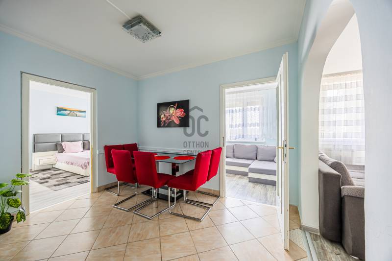 Ismerje meg ezt a világos FELÚJÍTOTT lakást Dunakeszi NYUGODT környezetében, mindössze egy RÖVID SÉTÁRA A DUNA-PARTTÓL!A Dunától 1 km-re (10 perc sétára) található, így rendkívül TISZTA A LEVEGŐ, tökéletes, ha szeret biciklizni vagy sétálni a Duna-parton, ahol több kávézó, fagyizó, étterem, játszótér is található és egész nyáron fiataloktól, gyermekektől nyüzsög. Bicikliúton Dunakanyarig, illetve Budapestre is el lehet tekerni biztonságosan. A 71 m2-es panellakás kimondottan jó állapotban van, így egy tisztasági festés után azonnal költözhető. Jelenlegi elosztása: 3 szoba, étkező, konyha, szélesített előszoba, külön fürdő és illemhely.Az elmúlt négy évben folyamatosan újították:festés, tapéta, modern beépített szekrény, fürdőszoba, ablakok, elektromos vezetékek.ELHELYEZKEDÉS:Infrastrukturálisan kiváló: busszal (buszmegálló 5 perc sétára) és autóval is jól megközelíthető, a közelben van orvosi rendelő, gyógyszertár, bank, közért, dm, posta, hentes, park, cukrászda, iskola, stb.A közlekedés kitűnő, így akár autóval, akár tömegközlekedéssel könnyedén elérheted a belvárost 30-40 perc alatt. Ideális választás fiatal pároknak, családosoknak, akik nyugodt, de mégis városhoz közeli lakást keresnek. Az ingatlan per-és tehermentes, megállapodás szerint költözhető. Ha bármilyen kérdésed van, vagy szeretnéd megtekinteni ezt a remek lakást, vedd fel velem a kapcsolatot! Az ingatlanpiac folyamatosan változik, szerezd meg most kedvező áron.
