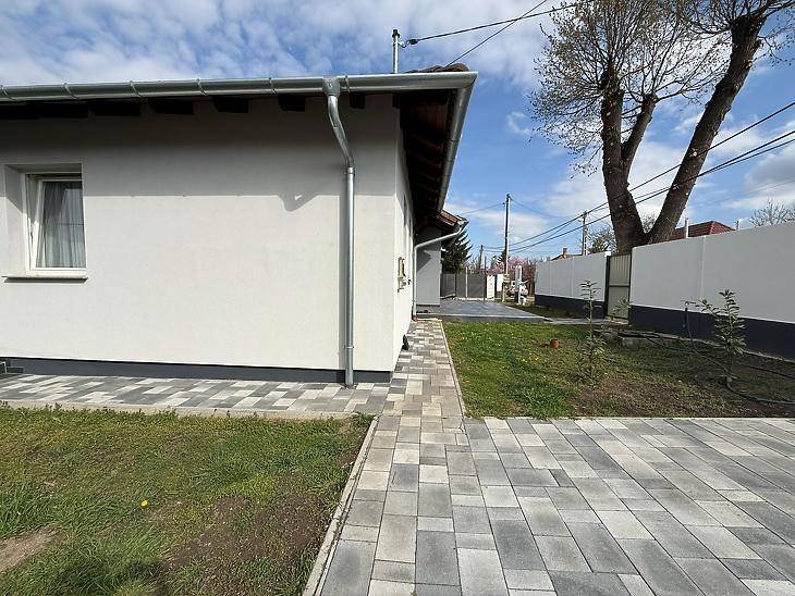 XVII. KERÜLETBEN: RÁKOSCSABÁN, CSENDES UTCÁBAN ELADÓ EGY 81 NÉGYZETMÉTERES, ÚJSZERŰ ÁLLAPOTÚ IKERHÁZFÉL, 371 NÉGYZETMÉTERES TELEKKEL ÉS KOCSIBEÁLLÓVAL.A ház 2021-ben épült Porotherm téglából, beton alappal és fa födémmel. A ház 10 cm dryvit szigeteléssel rendelkezik, a tető pedig 10 cm kőzetgyapottal szigetelt. A nyílászárók műanyagok.A fűtést és a meleg vizet kombi cirkó biztosítja, a nappaliban hűtő-fűtő klíma található.A szobák parkettásak, a többi helyiség járólappal burkolt.KIALAKÍTÁS: Amerikai konyhás nappali + étkező 10 négyzetméteres teraszkapcsolattal, 3 szoba, kádas fürdőszoba + wc, külön wc, közlekedő, előszoba.A KÖRNYÉK: Rákoscsaba csendes mellékutcájában, jó közlekedésnél. A közelben, iskola, óvoda, játszótér, orvosi rendelő, gyógyszertár, számos bevásárlási lehetőség.Az M0-ás autópálya pár perc alatt közelíthető meg. A közelben, pár perc sétával a 169 E és a 269, járatok megállója és a 956 éjszakai busz megállója található. IRÁNYÁR: 139 M FT VEVŐINK RÉSZÉRE A KÖZVETÍTÉS DÍJTALAN!A hirdetésben szereplő adatok tájékoztató jellegűek.