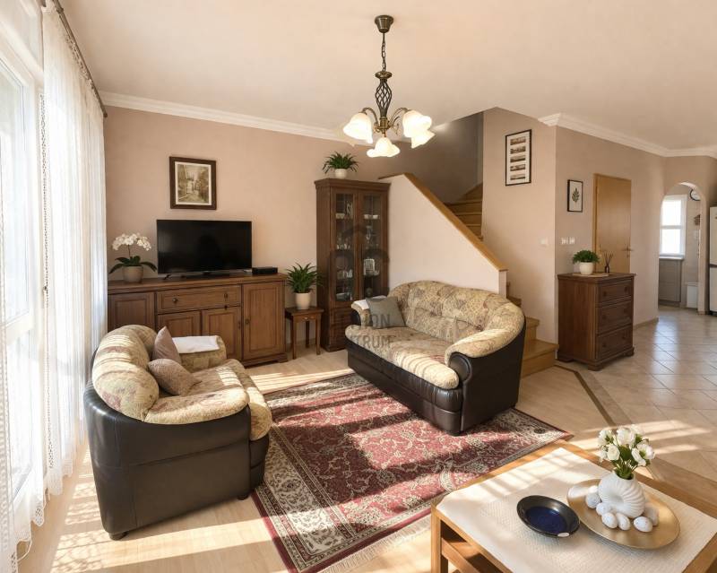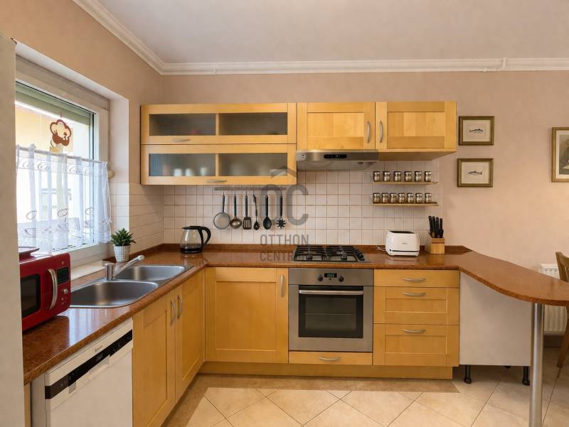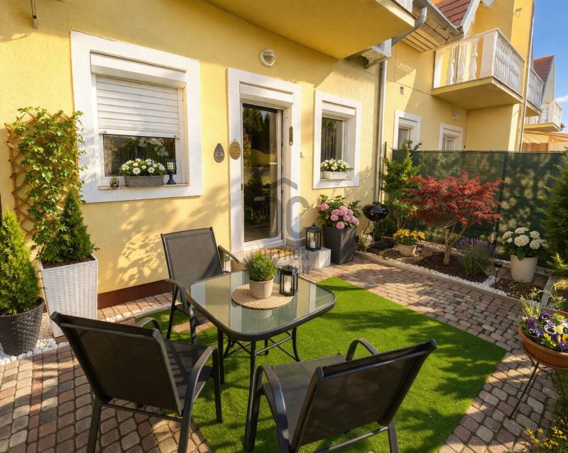 Hévíz nemcsak a világhírű gyógytaváról ismert, hanem a rendezett, barátságos kisvárosi hangulatáról is. A település kiváló választás azok számára, akik:- szeretik a nyugodt, zöld környezetet- értékelik az egészségtudatos, minőségi életformát- fontosnak tartják a jó infrastruktúrát- szívesen élnek olyan helyen, ahol a pihenés és a kikapcsolódás egész évben adottAz ingatlan főbb előnyei:- saját kis kert, amely ideális pihenésre, kikapcsolódásra- tágas garázs a hátsó udvarrészen- egyedi gázcirkó fűtés- közös tároló, praktikus tárolási lehetőséggel- duplakomfortos kialakítás- jól átgondolt, kényelmes elosztás- csendes, nyugodt környezetAz ingatlan elrendezéseAlsó szint:- Az alsó szinten egy tágas konyha–étkező–nappali található, amely kényelmes közösségi térként szolgál a mindennapokban.Ezen kívül helyet kapott még:- egy mosókonyha- egy külön WC kézmosóvalEmelet:- Az emeleten 2 külön nyíló szoba található, amelyekhez saját fürdőszobák tartoznak. Ez a kialakítás különösen kényelmes családoknak, pároknak vagy akár vendégfogadás esetén is.Kinek lehet ideális?Ez az ingatlan remek választás lehet:- állandó otthonnak- nyugodt második otthonnak- befektetésnek- azoknak, akik szeretnének Hévíz egyik kellemes, keresett részén élni, de nem szeretnének nagy kert fenntartásával foglalkozniHa olyan ingatlant keres Hévízen, amely ötvözi a kényelmet, a praktikus elrendezést, a kis kert nyújtotta szabadságot és a város különleges adottságait, akkor ez a ház kiváló lehetőség.Az alaprajz és a négyzetméterek tájékoztató jellegűek