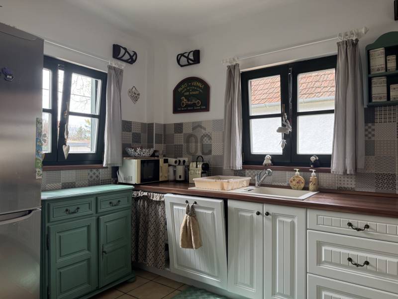 Hegymagas, ahol a nyugalom luxusa vár – Modern otthon a szőlőhegyek ölelésében Vannak helyek, amikbe első látásra bele lehet szeretni, és van Hegymagas, ami örökre rabul ejt. Eladásra kínáljuk ezt a felújított, 100,90 m²-es ékszerdobozt, ahol a provance-i hangulat és a Balaton-felvidéki életérzés találkozik.Miért fogsz azonnal beleszeretni?Tér és Fény: 4 tágas szoba, ahol a napfény a főszereplő. A nappali szíve egy romantikus kandalló, ami a hűvösebb estéken igazi meghittséget varázsol.Reggeli Stresszmentesen: A két igényesen kialakított fürdőszoba garantálja, hogy a család minden tagja kényelmesen indulhasson útnak.Élet a Szabadban: A 33,5 m²-es hatalmas terasz nem csak egy épületrész – ez a második nappalid. Tökéletes helyszín naplementés borozáshoz, nagy családi grillpartikhoz vagy egy csendes reggeli kávéhoz a természet lágy ölén.Kert, Ami Kikapcsol: Az 475 m²-es gondozott, rendezett kertben elfér a gyerekek játszótere, egy fűszerkert, de még a saját medencéd is. A praktikus kerti tárolóban pedig mindennek megvan a helye.A lokáció: Hegymagas – Ahol a csend az új luxusAz ingatlan a falu egyik legkedveltebb, csendes részén fekszik, barátságos szomszédok és tiszta levegő környezetében. Bár a béke szigete, a közlekedés kiváló, így a közeli városok és a Balaton-part is percek alatt elérhető.Paraméterek röviden:Állapot: Kiváló, frissen felújított (azonnal költözhető!)Terület: 100,90 m² nettó lakótér + 33,5 m² teraszTelek: 475 m²Jogi státusz: Tehermentes, gyorsan birtokba vehetőEz nem csak egy ház, ez egy életstílus. Ne maradj le róla, mert az ilyen adottságokkal rendelkező ingatlanok Hegymagason pillanatok alatt gazdára találnak!