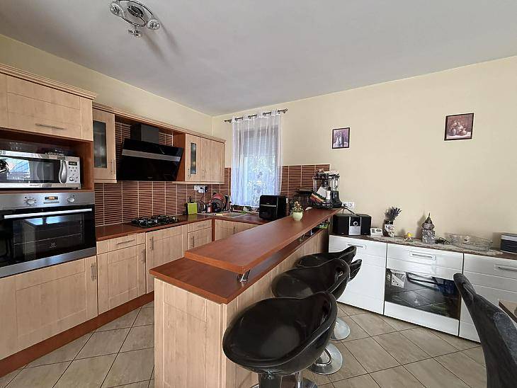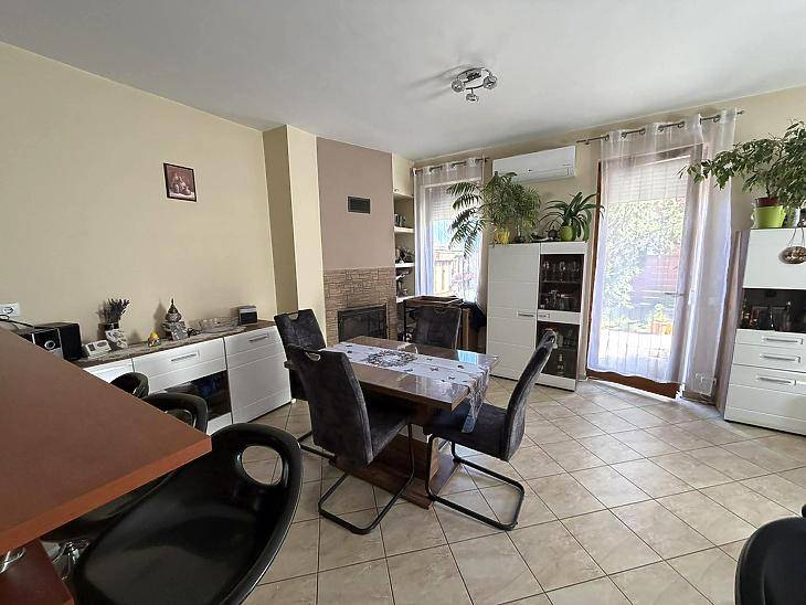 XVII. KERÜLETBEN, RÁKOSCSABA-ÚJTELEPEN ELADÓ EGY 110 NM-ES, JÓ ÁLLAPOTÚ, KÉTSZINTES IKERHÁZFÉL, 215 NM-ES TELEKKEL, TÁROLÓVAL ÉS FEDETT KOCSIBEÁLLÓVAL.Az ingatlan B30-as Porotherm téglából épült, beton alappal és vasbeton gerendával.A homlokzat 10 cm-es dryvit szigetelést kapott, a tető kőzetgyapottal szigetelt. A nyílászárók minden helyiségben 3 rétegű, dupla üvegezésű fa ablakok, redőnnyel felszerelve. A vezetékek cseréje megtörtént.A fűtést és a melegvíz-ellátást kombi cirkó biztosítja, a földszinten padlófűtéssel kiegészítve. A nappaliban hűtő-fűtő klíma és kandalló is található. A szobák parkettásak, a többi helyiség járólappal burkolt.KIALAKÍTÁS: Földszint: amerikai konyhás nappali + étkező, szoba, kamra, zuhanyzós fürdőszoba + wc, közlekedő, előszoba, terasz.Emelet: 3 szoba, kádas fürdőszoba + wc, közlekedő, erkély.A KÖRNYÉK: Rákoscsaba-Újtelep csendes mellékutcája. A közelben, pár perc sétára található a Rákoscsaba vasútállomás, valamint a 176E, 198 jelzésű buszok és a 998-as éjszakai járat. Közelben található bevásárlási lehetőség, gyógyszertár, óvoda, iskola, játszótér. Az M0-ás autópálya könnyen elérhető.IRÁNYÁR: 149.8 M FT VEVŐINK RÉSZÉRE A KÖZVETÍTÉS DÍJTALAN!A hirdetésben szereplő adatok tájékoztató jellegűek.