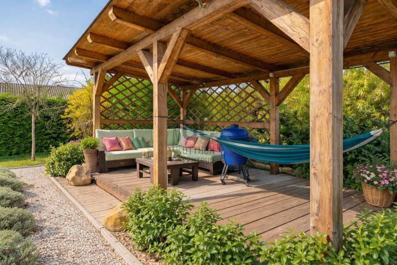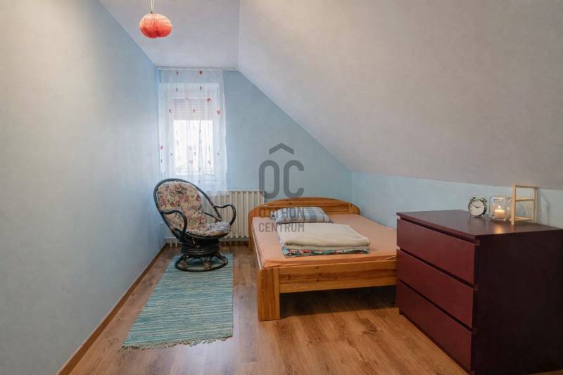 Gyenesdiáson kínálunk eladásra egy 5 szobás, 2 fürdőszobás, kiváló adottságokkal rendelkező, néhány éve felújított családi házat, csendes, rendezett környezetben. Az ingatlan ideális választás lehet nagycsaládosoknak, többgenerációs együttélésre, de akár azoknak is, akik a Balaton közelében keresnek tágas, világos otthont.Az ingatlan főbb jellemzői: - 5 kényelmes szoba- 2 fürdőszoba- külön WC-k mindkét szinten- garázs- szépen karbantartott, rendezett udvar- pergola a kerti kikapcsolódáshoz- kombinált fűtési rendszer: - vegyes tüzelésű kazán - gázkazánHelyiségek elosztása:Földszint:- tágas, világos nappali- külön dolgozószoba- nagy konyha étkezővel- fürdőszoba és WC külön helyiségbenTetőtér:- nagy előtér, amely kiválóan használható dolgozószobának, moziszobának vagy közösségi térnek- 3 tágas, kényelmes szoba- fürdőszoba és WC külön helyiségbenMűszaki állapot, felújítás: Az ingatlant néhány éve felújították, ennek köszönhetően műszaki és esztétikai állapota is kedvező:- 10 cm nikecell szigetelés az oldalfalakon- 20 cm kőzetgyapot szigetelés- cserépfedésű tető- műanyag nyílászárók- tágas, jól kihasználható, világos helyiségekKültérA ház egyik nagy előnye a gyönyörűen rendezett kert, amely ideális pihenésre, családi vagy baráti összejövetelekre. A pergola kellemes helyszínt biztosít a szabadtéri kikapcsolódáshoz, emellett a telek adottságai lehetőséget nyújtanak medence kialakítására is. (a medencés fotó látványterv)Az ingatlan kiváló nyaralónak, nagyobb családnak, vagy befektetésre egyarántA négyzetméterek és az alaprajz tájékoztató jellegűekTovábbi információért hívjon bizalommal