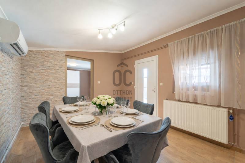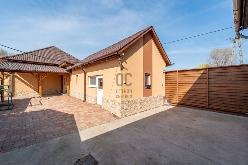 Hódmezővásárhely kertvárosias, nyugodt részén, Kincses-telepen eladó egy igényesen felújított 4 szobás családi ház!Főbb jellemzők:• tégla falazat A házba lépve a praktikus előtérbe érünk, ami kényelmes tárolást biztosít cipők, kabátok, táskák tárolására. • nappali+ 3 szoba, A három hálószoba közül az egyik a ház nyugodtabb, hátsó részében helyezkedik el, így tökéletes választás lehet szülői hálónak vagy vendégszobának. Ráadásul egy kisebb átalakítással – a nyári konyhával összenyitva – akár külön lakrész is kialakítható. Két szobában a padlószőnyeg alatt, szép állapotú parketta található.• nettó 125,8 m2 alapterület (lakórész:96,5nm)• 440 m2-es, rendezett telek • 2020-ban teljes körű felújítás, megújult:o víz- és villamoshálózat o műanyag nyílászárók o tető: új cseréplécek, fólia és Bramac cserepeko burkolatok (szobákban padlószőnyeg alatt szép állapotú parketta, többi helyiségben hidegburkolat)o konyhabútorok teljesen új állapotúakA ház elosztásaA házba lépve a praktikus előtérbe érünk, ami kényelmes tárolást biztosít cipők, kabátok, táskák tárolására.3 hálószoba, amelyből egy a ház végében található, ami kiváló vendégszobának vagy szülői hálószobának is. Kis átalakítással a nyári konyhával egybe nyitva, külön lakrész is kialakítható. Fürdőszobában kád és zuhanyzó is található, két mosdó, külön helyiségben és a fürdőben is Műszaki tartalom:• kondenzációs kazán (fűtés + meleg víz) • radiátoros hőleadás • 2 db hűtő-fűtő klíma • 3×16 A áramlekötés Udvar és extrák:• automata öntözőrendszer • elektromos úszókapu • térkövezett udvar • 17,4 nm fedett terasz • nyári konyha • 5 × 5,5 m-es garázs • ház mögött térkövezett parkolási lehetőség • saroktelek Lokáció:Hódmezővásárhely északi részén található, falusias jellegű városrész, minden szolgáltatás elérhető közelségben:• buszmegálló 300 m • óvoda, iskola, orvosi rendelő 1 km-en belülAzonnal költözhető!Támogatott hitelre nem alkalmas (Otthon start, CSOK+)Irányár: 69.000.000 FtMegbízható közvetítéssel, teljes körű ügyintézéssel!
