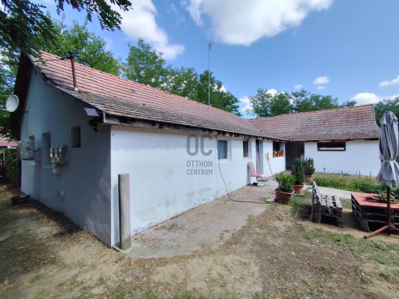 Adatok:- Telek területe: 4055 m², ebből 1000 m² körbekerítve- Ház nettó 60 m²- Vályogépítésű- Műanyag ablakok, egy db faablak- Fűtés-hűtés 2 db klímáról megoldott- H tarifa- Főépületben kútvíz van bevezetve- cseréptető- külön lakrész szoba - konyha ( ide víz nincs bevezetve)- Gáz és víz a telekhatáron„Az energetikai tanúsítvány készítése folyamatban van, amint rendelkezésre áll, úgy azzal a hirdetés frissítésre kerül.”Ez az ingatlan a \"Felező csomag\" megbízási portfólióhoz tartozik. Részletek az Otthon Centrum weboldalán.