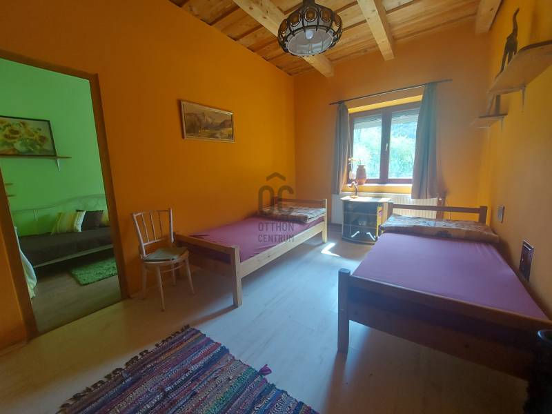 Bakonyszentlászló-Vinyén, a Cuha patak völgyében, a Bakony hegység csúcsai között (Budapesttől 140 km-re) eladó egy igazi kuriózum. A közel 1 hektáros területen található különleges hangulatú ingatlanban 2 önálló lakrész, 3 apartman, önálló közösségi ház, borospince, szauna és kiszolgáló helyiségek találhatóak. A jelenleg is működő apartmanok összesen 27 férőhellyel rendelkeznek, a két lakás pedig lakhatást biztosít a tulajdonosoknak vagy üzemeltetőknek. A ház elrendezése lehetővé teszi akár az átalakítást is, igény szerint a jelenleginél több, kisebb apartman kialakítását. A nyaralásra, táboroztatásra berendezett turistaház jelenleg is működő vállalkozás, amely igény esetén a meglévő előfoglalásokkal és kapcsolatokkal kerülhet átadásra.Elrendezése: - 1. lakrész: Nappali + 2 szoba, fürdőszoba, mosókonyha, kamra, előszoba, terasz kemencével – 70m2- 2. lakrész : Nappali + 1 szoba, konyha, fürdőszoba, WC - 45 m2- Kazánház- Apartman I.: 13 férőhely, fürdő WC-vel – 60 m2 - Apartman II. : 14 férőhely, 2 fürdőszoba + 2 külön WC – 70 m2- Apartman III. : „Kisház” tanári-lak: 2 férőhely, konyha, fürdő WC-vel, tarasz, kis kert – 20 m2- Pince: 3 helyiséges épített borospince- Közösségi ház – 80 m2- Szauna - Valipini (földbe süllyesztett üvegház)Az apartmanok és lakrészek önálló bejárattal és terasszal is rendelkeznek, akár önálló kertrészek leválasztására is van lehetőség. Az eladó ingatlan 40 km-re van Győrtől, Veszprémtől és Pápától; közvetlenül megközelíthető vonattal; de autóval vagy kerékpárral is, aszfalt úton. Vinye a természetet szerető \"bakancsos\" túrázók egyik paradicsoma, a Cuhai-völgykapuként is emlegetik. Valóban kapu ez a hely: belépés nyílik innen egy csodás, nyugodt világba, ahol a levegő kristálytiszta, a patak bájosan csörgedező, a Cuha-völgyi barlangok pedig titokzatosak. A patak, a szurdok, és a tanösvény mellett itt található a kellemesen hűvös vízű Kőpince-forrás, és a Betyár-barlang.Közelben találhatóak – a teljesség igénye nélkül – a Pannonhalmi Apátság, Zirci Apátság, Arborétum, Természettudományi Múzeum, Folklór Színház, fürdőlehetőségek: pápai-, és győri élményfürdők, vadasparkok, állatkertek. Irányár: 280 millió Ft. További információért keressen bizalommal. Hétvégén is elérhető vagyok!